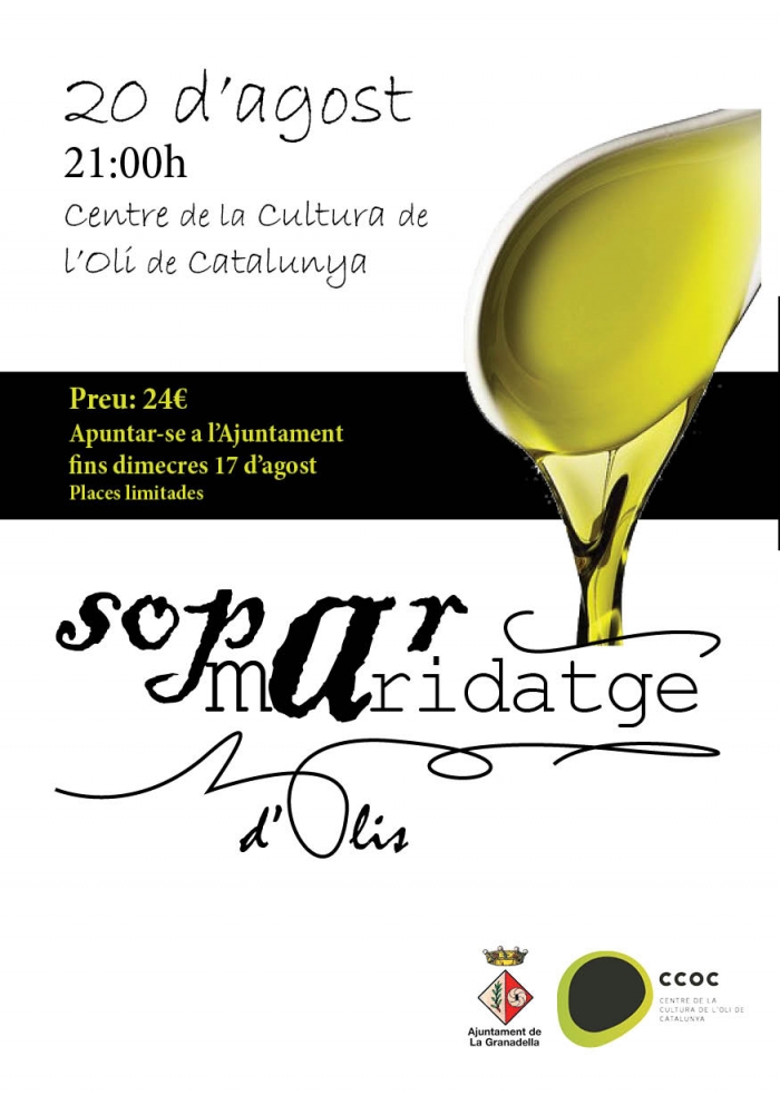 El sopar tindrà lloc el dissabte dia 20 a les 21h a l'Epai Gatronomic del Centre de la Cultura de l'Oli. Les places estan limitades a 24 persones. Cal apuntar-se a l'Ajuntament de la Granadella fins el dimecres 17 d'agost.