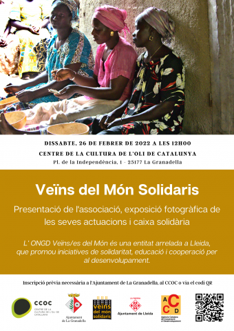 Dissabte, 26 de febrer, a les 12h, acollim al CCOC l'associació lleidatana Veïns del Món Solidaris. Una entitat que promou iniciatives de solidaritat, educació i cooperació per al desenvolupament.