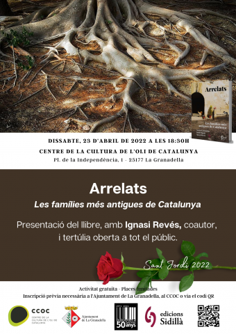 Dissabte, 23 d'abril, a les 18:30h, es realitzarà al Centre de la Cultura de l'Oli de Catalunya la presentació del llibre "Arrelats. Les famílies més antigues de Catalunya". Un llibre que ens endinsa en la història de diverses famílies d'arreu de Catalunya que han viscut a la mateixa casa des de fa molts segles.